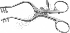 Samodržící retractor typu Wullstein o délce 125 mm s 3×3 hroty a tupými konci, používaný k stabilnímu roztažení tkání během chirurgických zákroků, čímž výrazně usnadňuje přístup a viditelnost v operačním poli.